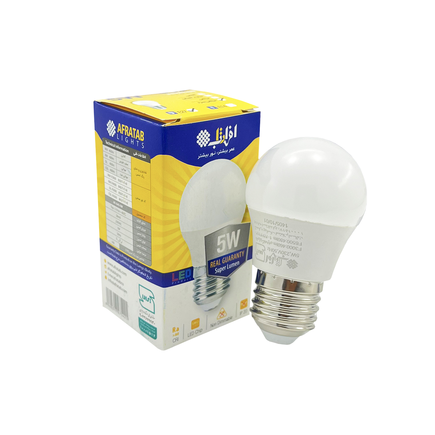 لامپ حبابی 5 وات E27 LED افراتاب