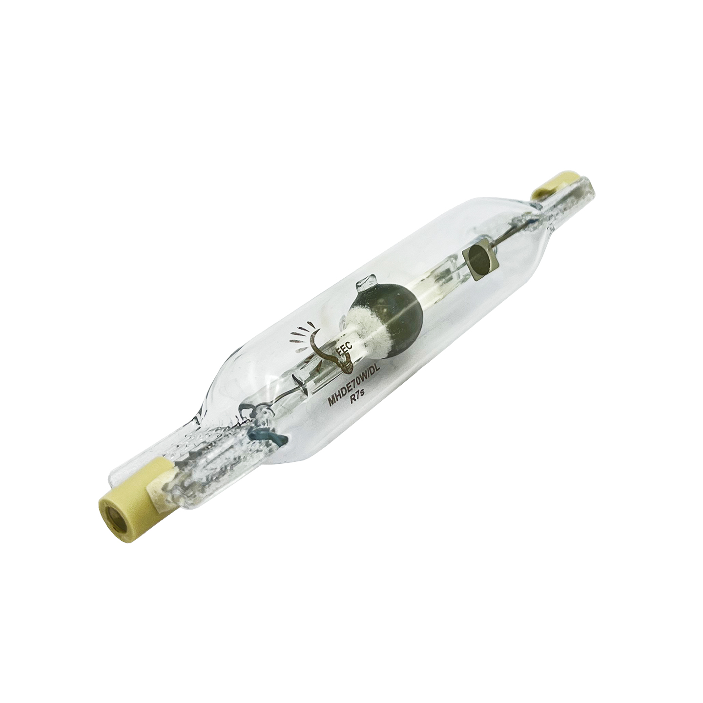 لامپ متال هالید (Metal Halide) با توان 70 وات، از نوع دو سر تیغهای (Double-Ended) و پایه R7s، یک منبع نور تخلیه در گاز (HID) با شدت نور بسیار بالا و کیفیت رنگ عالی است. این لامپها به دلیل تولید نور سفید و طبیعی، جایگزینی کارآمد برای لامپهای بخار سدیم و جیوه در فضاهایی هستند که علاوه بر روشنایی قدرتمند، نیاز به بازتاب رنگ صحیح (CRI بالا) نیز دارند. مدل MHDE70WDL برای کارکرد نیاز به بالاست (ترانس) مخصوص متال هالید دارد و مستقیماً به برق وصل نمیشود.