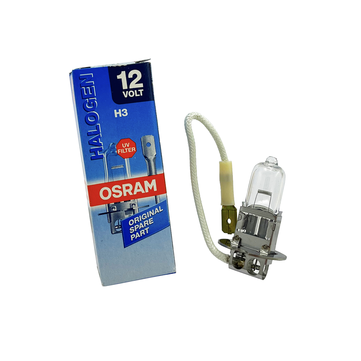 لامپ هالوژن 12 ولت 55 وات سیمدار با استاندارد H3 و پایه PK22s، برند اسرام (OSRAM) - کد 64151، یک لامپ رشتهای هالوژن با کیفیت و استاندارد جهانی است که برای تولید نور قوی و متمرکز طراحی شده است. این لامپ در مقایسه با مدل 6 ولت قبلی، برای استفاده در سیستمهای برق 12 ولت بسیار رایجتر است. توان 55 وات و ولتاژ 12 ولت، آن را به یک انتخاب استاندارد و پرقدرت برای چراغهای مهشکن (Fog Lights)، چراغهای کمکی و آفرود (Auxiliary/Off-road Lights)، و همچنین پروژکتورها و چراغ قوههای شارژی 12 ولتی تبدیل کرده است. استاندارد H3 به معنای تکرشته بودن و داشتن سیم اتصال است که آن را برای کاربردهای خاص نورپردازی تأکیدی و پرتابی مناسب میسازد.