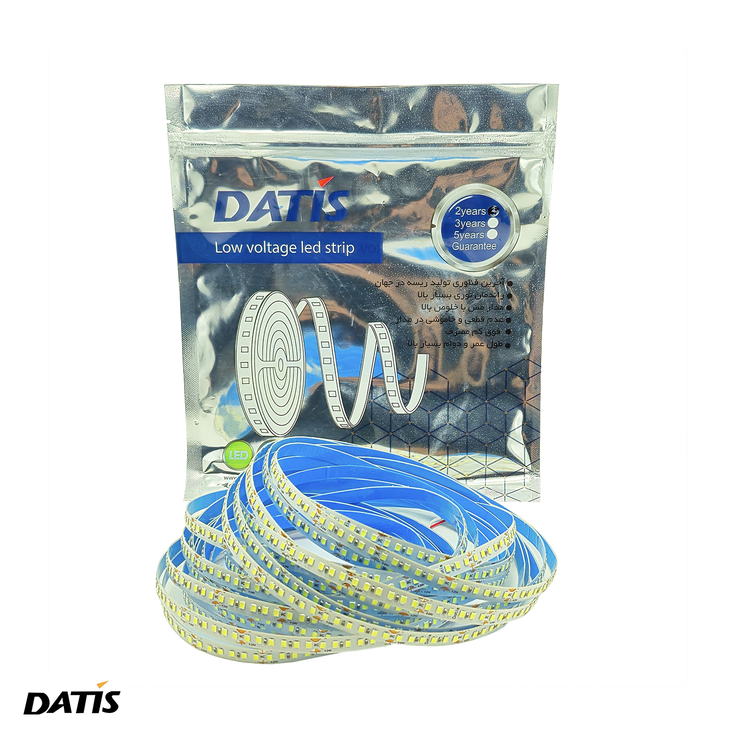 ریسه نواری ۲۴ ولت داتیس با تراکم ۱۸۰ و عرض ۸ میل، انتخابی حرفهای برای ساخت لاینهای نوری است. اگر به دنبال نوری پیوسته و بدون نقطه (به دلیل تراکم ۱۸۰)، ایمن (۲۴ ولت) و باکیفیت (چیپ ۲۸۳۵ وایرلس) هستید، این محصول از برند داتیس بهترین نتیجه را در دکوراسیون شما خلق خواهد کرد.